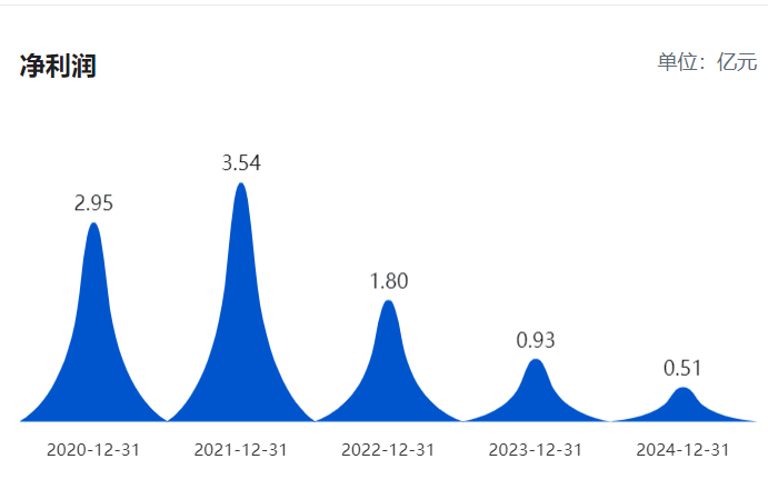 巨潮资讯数据显示,2022年~2024年,天下秀营收分别为41.29亿元、42.02亿元、40.66亿元,整体趋势尚属稳定,但同期公司净利润则明显呈现梯级下降趋势,2021年至2024年,公司归母净利润分别为3.54亿元、1.80亿元、0.93亿元、0.51亿元。公司净利已连降三年,每年的降幅都超过40%,其红人经济下的盈利困境明显。